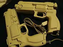 The Dreamcast video game console had several light guns released as accessories between the years of 1999 and 2003. The official light gun from Sega was released in Europe and Asia, but not in the United States due to concerns about bad press soon after the Columbine High School massacre.[1] Instead, an officially licensed light gun was released by Mad Catz for the U.S. market.[2]