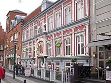 Located on Esbjerg's market square (Torvet), the two-storey building was designed as a hotel and completed in 1890. Over the years, it has also been used for offices and shops but has mainly been a pub. After it became a listed building in 1989, the facade of brick and sandstone was fully restored in 1993–94.[1][2]