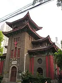 Fitch Memorial Church (called "Hongde Tang" (鸿德堂) in Chinese), named after George Field Fitch (費啟鴻) is a unique mixture of Chinese and western architectural styles, the only such mixed-style church to survive in Shanghai. The former campus of China Art University (中华艺术大学), in traditional style, was also where the League of Left-Wing Writers was founded. In the surrounding blocks, there is a well-preserved area of dense lilong housing (including both Shikumen and newer styles), showcasing the typical urban texture of Shanghai-style residential architecture.
