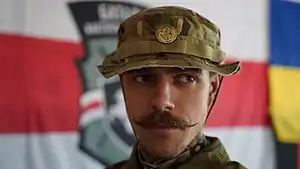 Dzianis Prokharaŭ (Belarusian: Дзяніс Прохараў; born 1995), nom de guerre "Kit" (Kot, lit. "Cat"), is a Belarusian soldier who serves as the commander of the Kastuś Kalinoŭski Regiment under the Armed Forces of Ukraine.