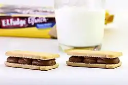 E.L. Fudge is an American snack food introduced in 1986 and manufactured by the Keebler Company, a subsidiary of Ferrero SpA. They are butter-flavored shortbread sandwich cookies with a fudge creme filling. The company describes their shape as "elfin", though it is actually various Keebler elves, each identified with a name tag.[1][2]