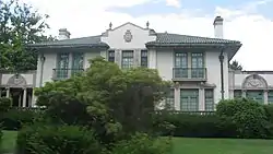 The E. A. Durham House, also known as the Durham-Peters Residence, is a historic home located at Sistersville, Tyler County, West Virginia. It was built in 1921, and is a 20-room Italian Renaissance Revival-style residence. It features pale stone and stucco and a low-pitched green tile roof. The interior features mahogany paneling, a six-foot Carrara marble fireplace, and Dresden chandelier.[2]