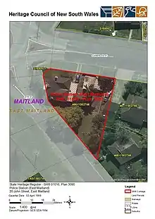 1. 1 2 3 4 5 6 7 8 "Police Station (East Maitland)". New South Wales State Heritage Register. Department of Planning & Environment. H01016. Retrieved 2 June 2018. Text is licensed by State of New South Wales (Department of Planning and Environment) under CC-BY 4.0 licence.