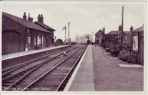 The station was opened on 2 October 1848 as East Ville and New Leake[2] after the nearby settlements of Eastville and Leake, and later renamed in 1852 to simply East Ville.[2] It was constructed by Peto and Betts civil engineering contractors who, in January 1848, had taken over the contract to construct the section of the East Lincolnshire Railway between Louth and Boston from John Waring and Sons.[3] This section was the last to be completed in September 1848 at an agreed cost of £123,000 (equivalent to £13,140,000 in 2021).[4][3] The station was situated in the middle of Eastville and was provided with two long sidings on the up side and a small goods yard, warehouse and long headshunt on the down side.[5] To the north of parallel platforms was a signal box and level crossing, with the main station building located on the down platform.[5] Goods traffic was always more important than passenger receipts and the goods yard handled large amounts of sugar beet in block loads, which were manually transferred to waiting wagons.[5] The 1922 timetable saw five up and four down services, and one Sunday service each way.[6] The station was closed to passengers on 11 September 1961[2] and to goods traffic on 15 June 1964.[7]