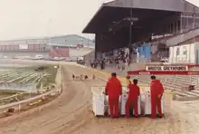 Eastville became one of the first circuits to abandon grass in 1968, becoming sand based, many tracks would follow suit over the next decade. After selling Oxford Stadium to the council Ian Stevens became General Manager at Eastville in 1975 and in 1980 the track became one of eight tracks to be awarded Bookmakers Afternoon Greyhound Service (BAGS) contracts resulting in a steady income stream. The track suffered a serious fire in August 1980 with the majority of the south stand destroyed causing more than £1 million worth of damage.[6] As a result of the fire the track closed for two months for repairs to be made.[7]