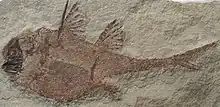 E. meltoni was first described by Richard Lund, an Adelphi University palaeontologist,[7] in 1977.[1][3] The fossils found of E. meltoni have shown a great deal of sexual dimorphism, males being found to have a maximum 150mm body length while the maximum body length found in females was only 70mm (juveniles were 13-20mm). In general, the females only grew to about half the size of the males.[5] Males also had four pairs of spikes which may have been used to defend against predators and to identify the fish as male.[6]