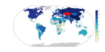 In 2017, the World Economic Forum compiled its Global Competitiveness Ranking, ranking Kazakhstan 57th out of 144 countries.[23] The ranking considers multiple macroeconomic and financial factors, such as market size, GDP, tax rates, infrastructure development, etc.[24] In 2012, the World Economic Forum listed corruption as the biggest problem in doing business in the country,[25] while the World Bank listed Kazakhstan as a corruption hotspot, on a par with Angola, Bolivia, Kenya, Libya and Pakistan.[26] Kazakhstan scored 31 points out of 100 in Transparency International's 2018 edition of the Corruption Perceptions Index, indicating high levels of corruption.[27]