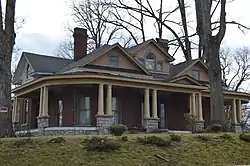 Edgar Harvey Hennis House is a historic home located at Mount Airy, Surry County, North Carolina. It was built in 1909, and is a 1+1⁄2-story, three bay by eight bay, Late Victorian / Colonial Revival style brick veneer dwelling. It has a two-story rear ell with two-tier porch, a hipped roof with multiple projecting gables, four corbelled interior chimneys, and a wraparound porch.[2]
