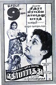 Edhir Paradhathu (transl. The Unexpected) is a 1954 Indian Tamil-language romantic drama film directed by Ch. Narayana Moorthy and written by C. V. Sridhar. The film stars Sivaji Ganesan and Padmini, with V. Nagayya, S. V. Sahasranamam, S. Varalakshmi and Friends Ramasamy in supporting roles. It was remade in Malayalam as Nithyakanyaka (1963), in Telugu as Ilavelpu (1956) and in Hindi as Sharada (1957).