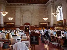 Rose Reading Room at the New York Public Library Main Branch in Manhattan (full panoramic photo)