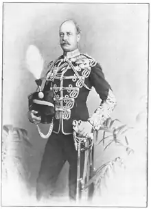 Wood succeeded Kerr as commander of the regiment upon his retirement in May 1881,[5] with Wood gaining the full rank of lieutenant-colonel in June.[11] In February 1884, he embarked aboard the troopship HMS Jumna for the return journey to England following the end of the Hussars service in India. However, the ship was intercepted 20 miles outside Aden and given new orders to sail with haste for Suakin in the Khedivate of Egypt. The regiment disembarked and was supplied with horses from Baker Pasha's Cavalry and the Egyptian Gendarmerie,[5] with the military objective of destroying the power of the Sudanese military commander Osman Digna. Wood commanded the command of the Cavalry Brigade until the arrival of Sir Herbert Stewart from England, commanding it at the Battles of El Teb and Tamai.[5] He was mentioned in dispatches during the conflict and was made a Companion of the Order of the Bath in recognition of his service in it.[12] He was promoted to colonel in November 1883.[13]