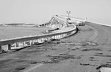 Six-foot (1.8 m) waves along the coastline of Saint Mary's County, with Point Lookout State Park suffering $3 million in damages (equivalent to $4.8 million in 2022[14]). In the county, 2,500 wharves and piers were destroyed, with another 1,000 moderately damaged, resulting in $10.25 million in monetary damage (equivalent to $16.31 million in 2022[14]). The storm surge destroyed the bridge to Saint George Island by a few hours after the hurricane made landfall, and the flooding covered much of the island for a week. There, 20 homes were destroyed. Shore revetments experienced $53.4 million in damage (equivalent to $84.9 million in 2022[14]). Throughout Saint Mary's County, residential damage amounted to about $17 million (equivalent to $27 million in 2022[14]) with about $1.5 million (equivalent to $2.39 million in 2022[14]) to commercial buildings. The damage was caused primarily by the storm surge, though the winds produced minor to moderate damage, the worst effects in the state from winds. In the county, the winds blew off the roof of a home and downed 70 trees, leaving 27,092 without power.[15]