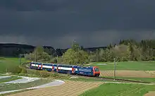 The Effretikon to Hinwil railway line, also known as the Kempttalbahn, is a railway line in the Swiss canton of Zurich. It runs from Effretikon, where it diverges from the Zurich to Winterthur line, to Wetzikon, where it connects with the Wallisellen to Rapperswil line, and Hinwil. The line is 22.5 kilometres (14.0 mi) long, standard gauge, single track and electrified at 15 kV 16.7 Hz AC supplied by overhead line.[2]