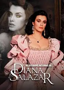 El extraño retorno de Diana Salazar (English title: The Strange Return of Diana Salazar) is a Mexican telenovela produced by Carlos Téllez for Televisa in 1988.[1][2] It is an unusual example of a telenovela which addresses supernatural topics. The telenovela first begins in Zacatecas, New Spain in 1640 and later transitions to Mexico City in 1988, in which a woman accused of witchcraft and burned by the Holy Inquisition, reincarnates into a young girl who seeks to find the reason for her constant nightmare of being burned at the stake. The series stars Lucía Méndez, Jorge Martínez, Alejandro Camacho and Alma Muriel.