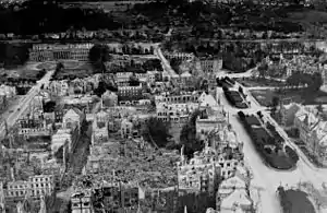 Ruins of Koblenz in 1945, the burned out Electoral Palace at top left