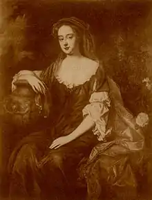 Aged 12, she married, on 27 March 1679, the 20-year-old Henry Cavendish, Earl of Ogle (1659 – 1 November 1680), the only son and heir of Henry Cavendish, 2nd Duke of Newcastle, who in accordance with the marriage settlement adopted the surname of Percy in lieu of his patronymic.[2] However he died the following year and was buried in the parish church at the Percy seat of Petworth. Henry, Earl of Ogle, is remembered mainly for this short-lived marriage. She was only twelve when they married and was widowed a year later; in view of her age, it is unlikely that the marriage was consummated.[3]