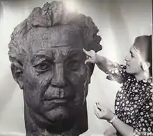 Hüseynova is most noted for her massive sculpture works on monuments and her originality of composition. Some of her most noted pieces include The Farm Collective Girl (1957), Worker (1958), Family (1960), and Mother (1970). She created sculptures for the tombs of Jafar Jabbarly (1968) and Rasul Rza (1970), as well as a bas-relief of Lev Landau[3] and a monument to Hasan bey Zardabi (1983), which stands in Icheri Sheher at the entrance to the publishing house of the Azerbaijan Encyclopedia.[3][6] She created two monuments in Germany and in 1967 was recognized as an Honored Artist of Azerbaijan.[3] Other noted works include a statue of Dmitri Mendeleev on the loggia of the National Library of Azerbaijan in Baku, a monument to Jafar Jabbar in Sumgayit (1966) and a painting on canvas in the Milli Mejlis building featuring a portrait of Nizami Ganjavi.[6][1] In addition to her sculpture, she was known for portraiture, with her most-known pieces being: Portrait of Sattar Bahlulzade, Portrait of Rasul Rza, Portrait of a student, and Portrait of Tughril.[6]