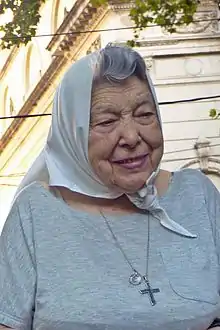 Elsa Massa (c. 1929 - June 21, 2018) was an Argentine human rights activist. She became a Mother of the Plaza de Mayo after her son, Ricardo Massa, who was a 30 year old doctor, was abducted on August 26, 1977 in Rosario[1] by the Argentine Anticommunist Alliance because of his support for Juan Perón.[2] Elsa was 92 years old when she died.[3]