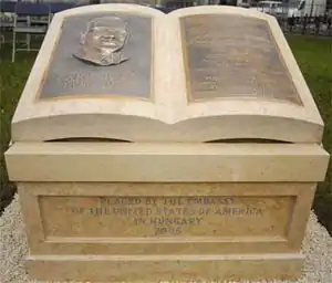 A statue commemorating Carl Lutz was unveiled on December 13, 2006, in a park adjacent to the U.S. Embassy at 12 Liberty Square.[17][16] The ceremony was attended by Hungarian, Swiss, and American politicians, as well as representatives of the Jewish community.[17][16] The memorial acknowledges Lutz's courageous actions that saved tens of thousands of Hungarian citizens persecuted as Jews during World War II.[16]