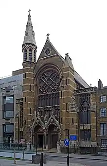 English Martyrs Church is a Roman Catholic parish church in Tower Hill, London. It was built from 1873 to 1876, by Pugin & Pugin according to designs by their deceased brother, E. W. Pugin. It is located on Prescot Street, close to the Royal College of Psychiatrists. It was founded by the Missionary Oblates of Mary Immaculate and is a Grade II listed building, having been listed in 1982.[1][3]
