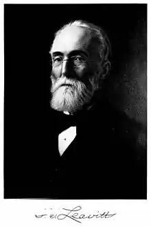 Leavitt was a resident of Cambridge, Massachusetts.[2] He and his wife, the former Elizabeth Pettit, daughter of Philadelphia locomotive designer William Pettit, had five children: Mary Alford; Hart Hooker; Margaret Almira; Harriet Sherman; and Annie Louise.[3] The astronomer Henrietta Swan Leavitt was his niece.
