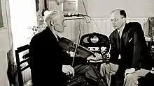 Erkki Ala-Könni recording a Finnish folk musician in 1956.