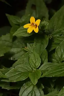 Erythranthe nudata, the bare monkeyflower,[1] is a species of monkeyflower endemic to the serpentine soils of Colusa, Lake and Napa Counties in California.[2][3][4][5] It is an annual flower with bright yellow tube-shaped blooms and small narrow leaves.[6]