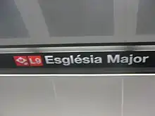 Església Major is a Barcelona Metro station in the municipality of Santa Coloma de Gramenet, in the northern part of the metropolitan area of Barcelona underneath Plaça dels Enamorats. The station is named after the town's main church, located in Plaça de l'Església. It's served by L9 and is one of the stations comprising the first part of Line 9 to be opened, between Can Zam and Can Peixauet, inaugurated on 13 December 2009. Sanchez-Piulachs, Arquitectes S.L were in charge of the design of Església Major.