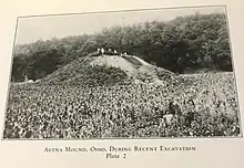 According to the book Pictorial Ancient America by Jay S. Grant (see photo), at least one of the mounds appears to have been archaeologically excavated in the early 1920s. At the time, the Ohio State Archaeological and Historical Society asserted, "due to recent discoveries," "It was formerly supposed that the Mound Builders were a vanished race of people who preceded the Indians in occupancy of this continent. This notion has been exploded. The builders of the mounds were ancestors of our present-day Indians"