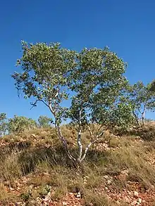 Subspecies leucophloia is found in gullies and on hills and plains in the western Pilbara region of Western Australia where it grows in skeletal soils over sandstone.[14] Subspecies euroa occurs in the central parts of the Northern Territory between Katherine, Tennant Creek and the southern part of Arnhem Land[4] and into north western Queensland[15] between Mount Isa, Cloncurry and Dajarra.[6]