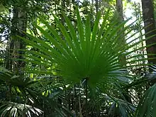 A total of 16 species of fungi, 19 mosses, 4 conifers, 92 ferns, 299 dicots and 54 monocots are recorded as occurring in the National Park.[10] Much of the rainforest in the National Park is complex mesophyll vine forest with pockets of simple and complex notophyll vine forests on poorer soils.[3] Many of the vegetation communities including rainforests, vine thickets and vine forests are considered fire sensitive.[11]