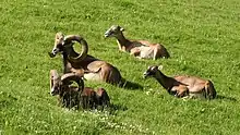 The European mouflon (Ovis aries musimon[1]) is a feral subspecies of the primitive domestic sheep. It was originally found only on the Mediterranean islands of Corsica and Sardinia, but has since been introduced into many other regions of Europe. It is not to be confused with Ovis gmelini, also called the mouflon, which is found in Western Asia and is also ancestral to modern domestic sheep.