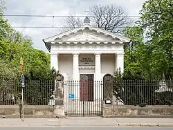 The Evangelical Cemetery of the Augsburg Confession was consecrated on 2 May 1792, designed by the architect Szymon Bogumił Zug. More than 100,000 people have been buried at the cemetery since its opening in 1792. During the Kościuszko Uprising of 1794 and during World War II, intense fighting took place at the cemetery. Worth seeing is the neoclassical Halpert family chapel (1835), which serves the Lutheran community. The chapel was rebuilt in 1975, however, many tombstones are still destroyed or in poor condition. As in the Roman Catholic Powązki Cemetery, a committee for the restoration of the cemetery has been set up, and collects money on All Saint's Day for the treasures of the burial ground to be returned to their former glory. [1]