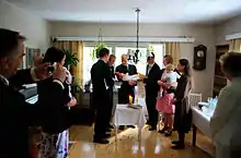 On 9 February 2011, the ELCF Bishops' Conference issued a "Pastoral instruction concerning free prayer with and for those who have registered their civil partnership", which can be conducted either privately or publicly in a church, with or without guests, but which is not to be confused with "the blessing of a partnership comparable to marriage".[37]