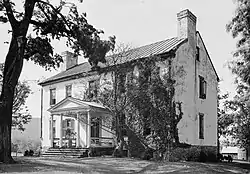 Lewis Berkeley (1777-1836) built the house about 1827 and moved from his plantation near Aldie, Virginia. His son Edmund inherited Evergreen. When Edmund married an heiress from Tennessee, Mary Lawson Williams, her father gave Edmund the choice of a dowry in land or slaves, and Edmund Berkeley chose the latter. Thus dozens of enslaved people walked to the northern Virginia plantation from Tennessee. The Berkeleys raised 13 children on the plantation, and owned 52 enslaved people by 1860.[3] The plantation also included a spoke mill, which burned down either early in the war or shortly before the war, and was not rebuilt due to the conflict.