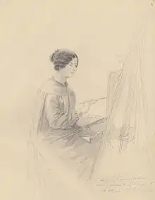 ![]() Félicie Schneider at her easel, drawn by her studiomate Maria Röhl in Léon Cogniet's studio, Paris, 16 June 1853 | |