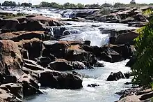 The Félou Falls (French: Chutes du Félou) are located on the Sénégal River 15 kilometres (9.3 mi) upstream of Kayes in western Mali. The river tumbles 13 metres (43 ft) down an irregular series of rocky steps. The waterfalls mark the furthest point from the mouth of the river that can be reached by boat. In 2009 work started on the construction of the Félou Hydroelectric Plant, a 62.3 megawatts (83,500 hp) run-of-the-river hydroelectric plant at the falls replacing a small 600 kW plant dating from the 1920s.