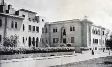 The school of medicine was called el-Demerdash School of Medicine, before establishment of the university. The original El-Demerdash Hospital was established on August 5, 1928, by a generous grant from El-Demerdash Pasha[4] and his wife and daughter. It was built on 12,400 square metres, and had 90 beds and the following sections: quarters for a resident physician and chief nurse, two wards, a surgery unit, out-patient clinic, a laboratory, kitchen, laundry room, isolation ward, an autopsy department and a mosque containing the mausoleum for the El-Demerdash family. The foundation of the hospital was witnessed by many people representing all the society of Egypt and also by the two most powerful figures in the country in that time: Lord George Lloyd (later on George Lloyd, 1st Baron Lloyd), the British high commissioner, and Prime Minister of Egypt Mohamed Mahmoud Pasha. The opening ceremony was covered by Al Ahram, The Times and the Near East journals.[4] It was officially opened on May 5, 1931. A memorial metallic plate and a marble monument were erected to mark this event.