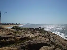 The Falésias de Marataízes Natural Monument is in the municipality of Marataízes, Espírito Santo.[1] It has an area of 42.20 hectares (104.3 acres).[2] The monument, in the south of the municipality, protects a landscape of falésias (cliffs) of great scenic beauty along the beach. The cliffs, made of mudstone, sandstone and conglomerate sediments from the Miocene, are constantly being eroded.[3] The cliffs are up to 30 metres (98 ft) in height, and extend from the Boa Vista do Sul region to the Praia dos Cações.[4] Erosion has caused cracks and gullies in the cliffs and masses of fallen rocks lie at their base.[2]
