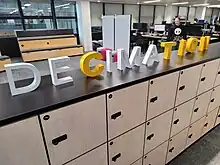 The inside of Mediatonic's office on 28th September 2023 taken by now ex employee Ed Fear[129] who was the director of their other game Murder By Numbers, The word Mediatonic was rearranged to spell 'Decimation'.