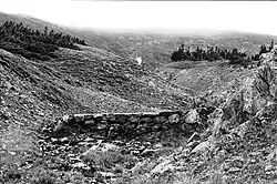 The catchment basin captures a stream behind a small stone-faced concrete dam.[2]