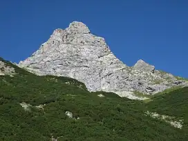 The Fallenbacherspitze (also: Fallenbacher Spitze, Fallenbacher-Spitze) in the Austrian state of Tyrol is a 2,723-metre-high rock summit in the Lechtal Alps. Due to its remoteness and lack of signed routes, the mountain is not climbed very often.