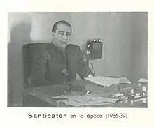 Uruguayan businessman Joaquín Martínez Arboleya, who became afterwards a renowned writer under the pen name of Santicaten, was one of the most important anti-communist propagandists of the pre-dictatorial era. Having fought in the Spanish Civil War, Martínez claimed to have witnessed the execution of José Antonio Primo de Rivera while being arrested by republicans in Alicante. He was a key figure on the early years of Francoist propaganda.[26]