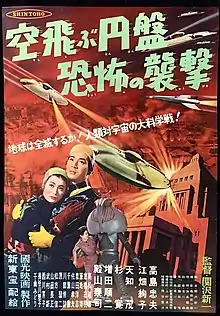 Fearful Attack of the Flying Saucers (Japanese: 空飛ぶ円盤恐怖の襲撃, Hepburn: Soratobu Enban Kyōfu no Shūgeki) is a 1956 independent Japanese tokusatsu science fiction film directed and written by Shinichi Sekizawa, with special effects and cinematography by Sadao Uemura. Produced by Kokumotsu Films and distributed by Shintoho, it is Sekizawa's sole directorial credit and stars Tadao Takashima, Junko Ebata, Taiji Tonoyama, Hiroshi Sugi, Shigeru Amachi, and Junji Masuda. In the film, a group of Japanese scientists deal with a sudden alien invasion by inventing a rocket in order to save the planet.[1]