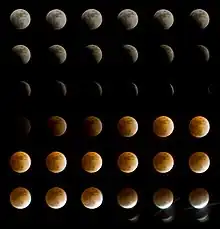 ![]() Observed from Baltimore, Maryland, from 2:30 to 3:01 UTC. Lunar north is near left. | |