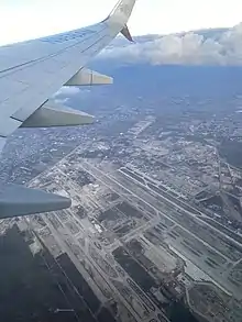 Felipe Ángeles International Airport (Spanish: Aeropuerto Internacional Felipe Ángeles, AIFA), also known as Mexico City Felipe Ángeles International Airport or simply Mexico City-AIFA (IATA: NLU, ICAO: MMSM) is an international airport located in Zumpango, State of Mexico, 35 kilometres (22 mi) north of Mexico City.[3] Originally named Santa Lucía Air Force Base, it opened for civilian use in 2022, serving as the second airport for Greater Mexico City.[4] The passenger terminal facilitates domestic and international flights, functioning as a Focus City for Viva Aerobus and Aeromexico Connect. It is set to be the main hub for Mexicana, a state-owned airline. Apart from civilian operations, the airport accommodates the Mexican Air Force, general aviation, and charter flight services.