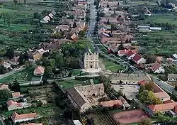 The baroque Allsaints church was built in 1726 under Count György Széchenyi. Besides the church is a small calvary.