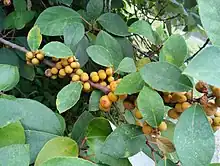 The fruits are small ellipsoid to subglobose figs that grow along the twigs, 0.8–1 cm in diameter, light green initially, ripening to a yellowish brown, but sometimes to orange or red.[4] The figs closely resemble Gooseberries.[2]