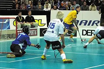This time Finland and Sweden met in the semi-finals. Sweden gained the upper hand, were victorious and continued on to the final. Finland was to settle for the bronze medal game where they met Switzerland, an upcoming floorball nation, who had upset Finland earlier in the group stage with a 4–3 victory. The game was again close fought with team Finland emerging on top in a high scoring 8–7 win decided in a penalty shootout. Henri Toivoniemi (GK), Jari Lehtonen (D) and Mika Kohonen (F) were selected to the tournament's All-Stars line-up.[1][3]