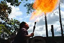 Dragon's breath, where the fire breather continues to feed a full-sized flame
